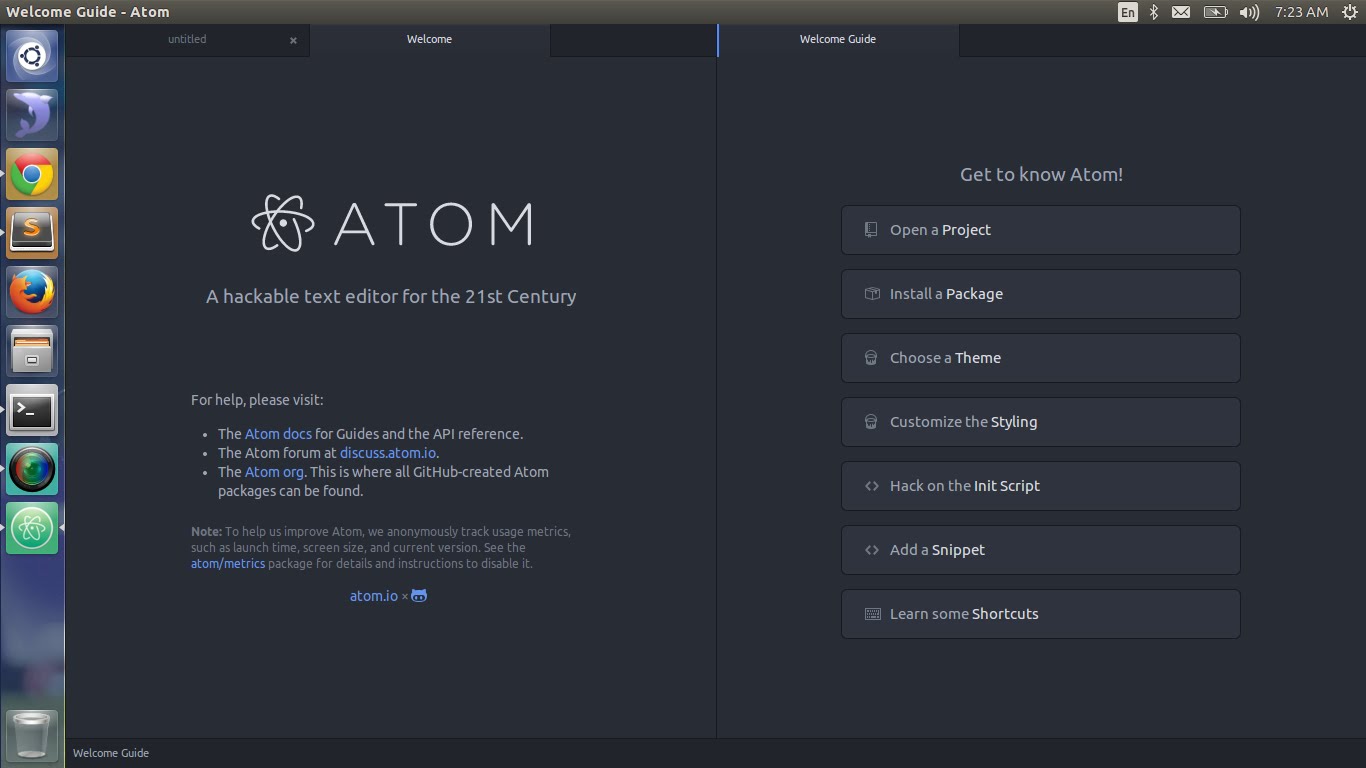 Atom es un editor de código de fuente abierta para macOS, Linux, y Windows con soporte para plug-ins escrito en Node.js, Incrustando Git Control, desarrollado por GitHub. Es una aplicacion de escritorio construida utilizando tecnologias web. Está basado en Electrón (Anteriormente conocido como Atom Shell),Un framework que permite aplicaciones de escritorio multiplataforma usando Chromium y Node.js. También puede ser utilizado como un entorno de desarrollo integrado (IDE), Atom libero su beta en la versión 1.0, Sus desarrolladores lo llaman un "Editor de textos hackable para el siglo XXI".